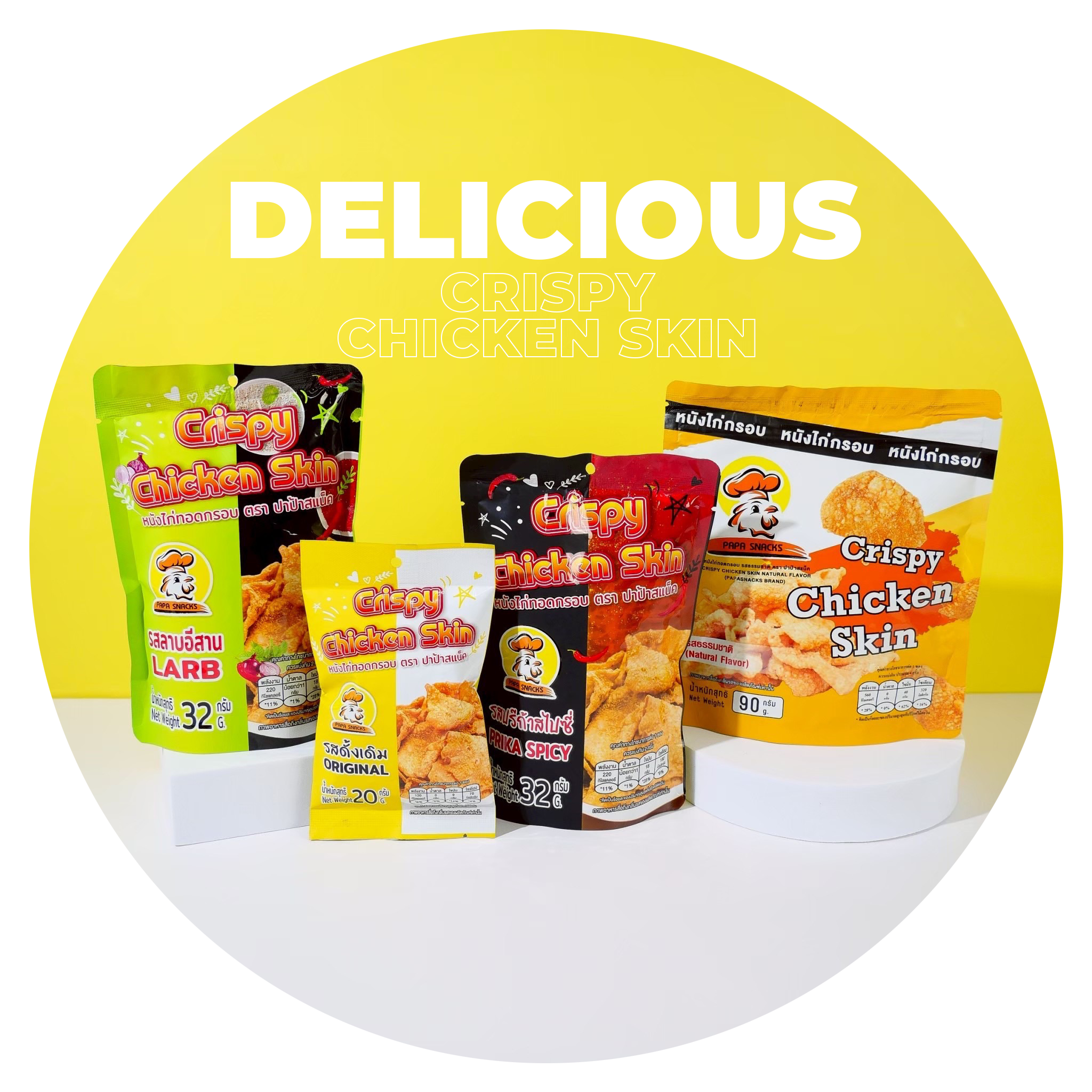 PAPA Snacks brand was established to expand the market and develop healthy snacks. We are a manufacturer and distributor of crispy chicken skins, with over 9 years of continuous production experience. PAPA Snacks focuses on selecting the best ingredients and maintaining quality standards.